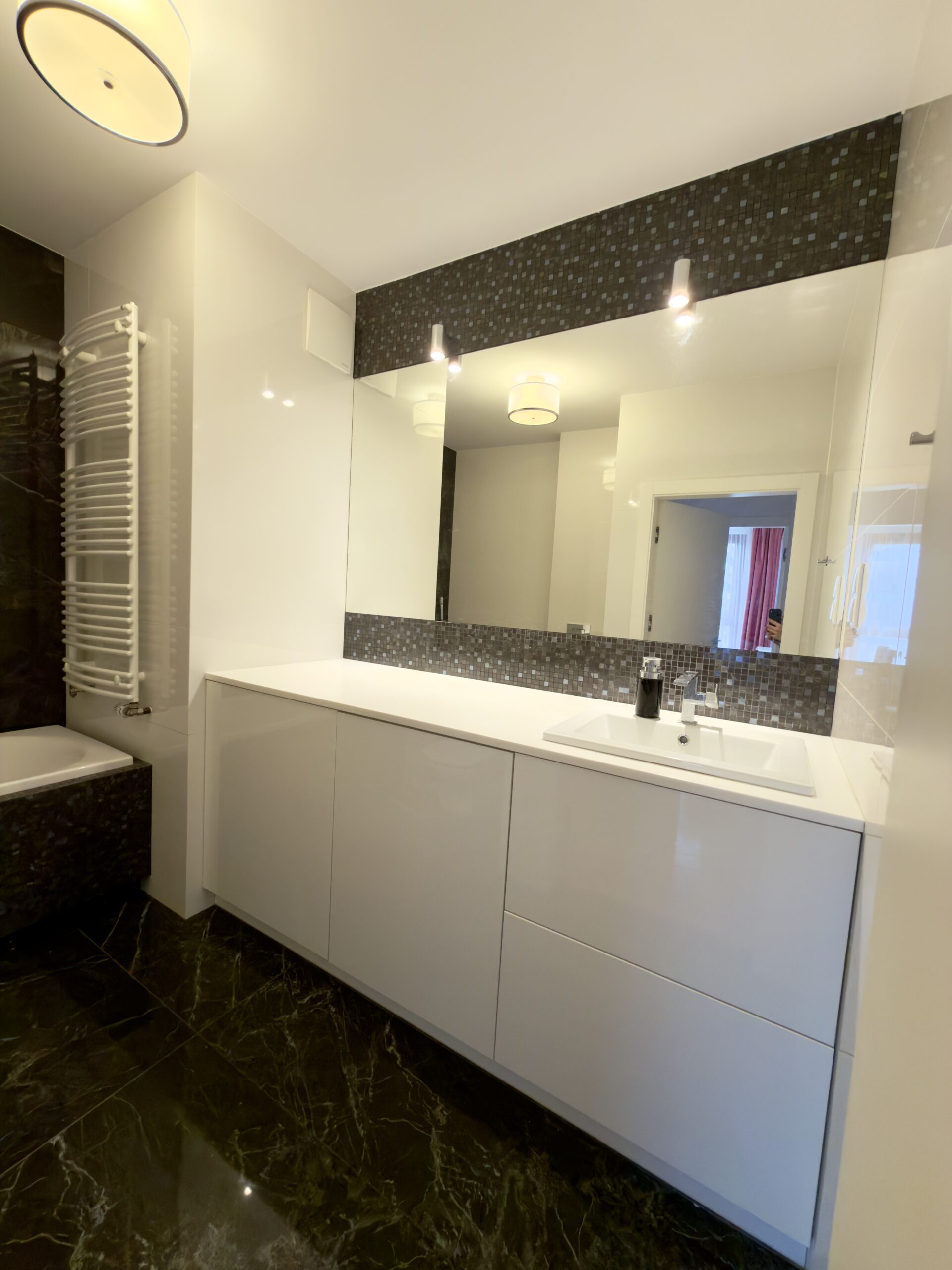 The apartment is situated in the prestigious Wilanów district, in a peaceful and green area. Nearby: